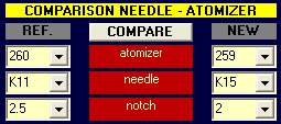 allows to analyze and to find the optimal needle and atomizer for the needs of the engine,